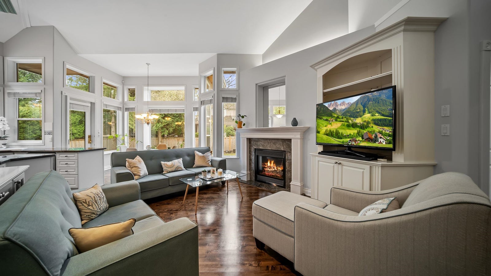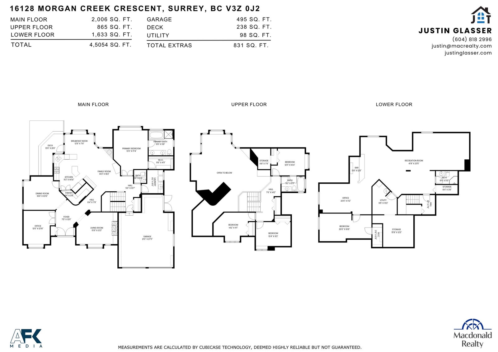 Stunning family home in desirable Morgan Creek. Beautifully designed residence featuring a unique floor plan with elegant details throughout. A grand two-storey entrance complemented by soaring 20-foot ceilings over the family room, kitchen, all overlooking the lush, well-established east-facing backyard—ideal for morning light and outdoor entertaining. The main floor is thoughtfully laid out with a spacious primary bedroom with ensuite and WIC. Custom deep box windows flood the home with natural light and add timeless architectural character, while quality finishings elevate every space. 3 bedroooms upstairs plus a fully finished basement expands your living space with a fifth bedroom, large recreation room, wet bar, card room, and excellent potential to create a sixth bedroom or a suite!