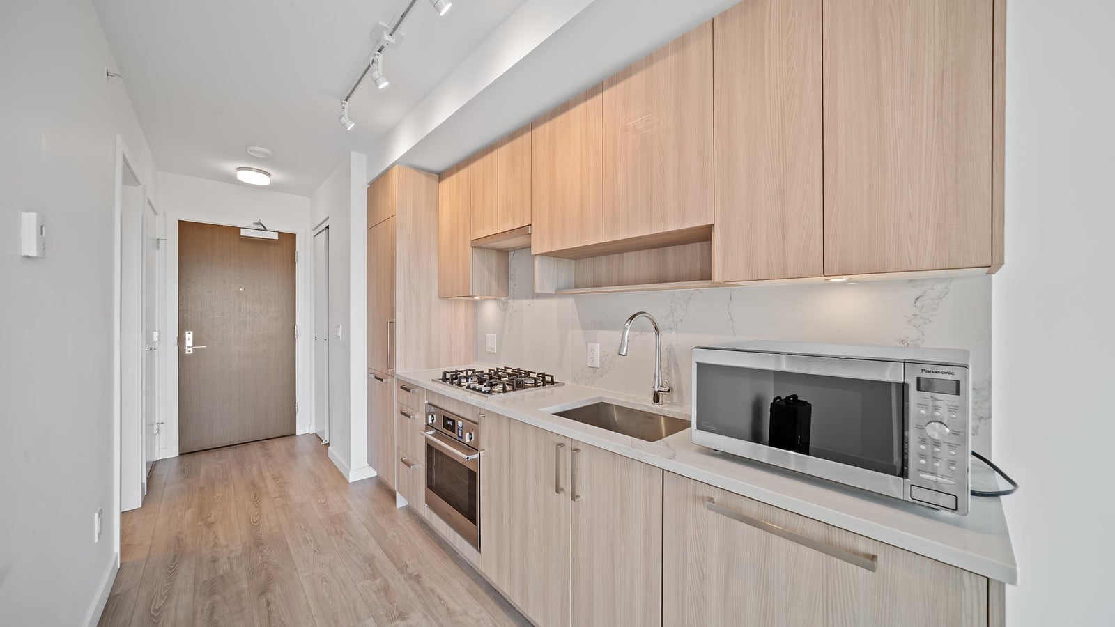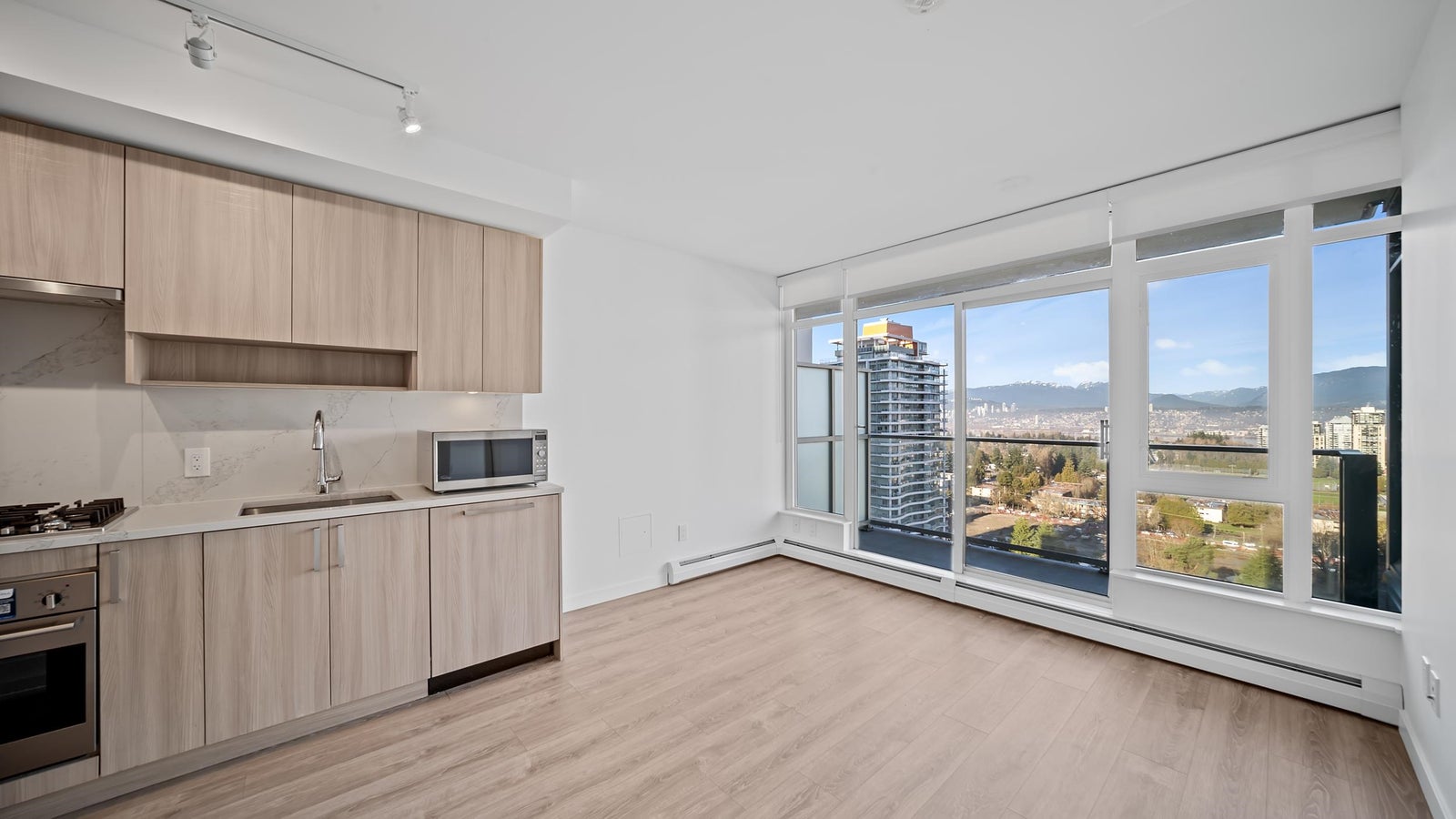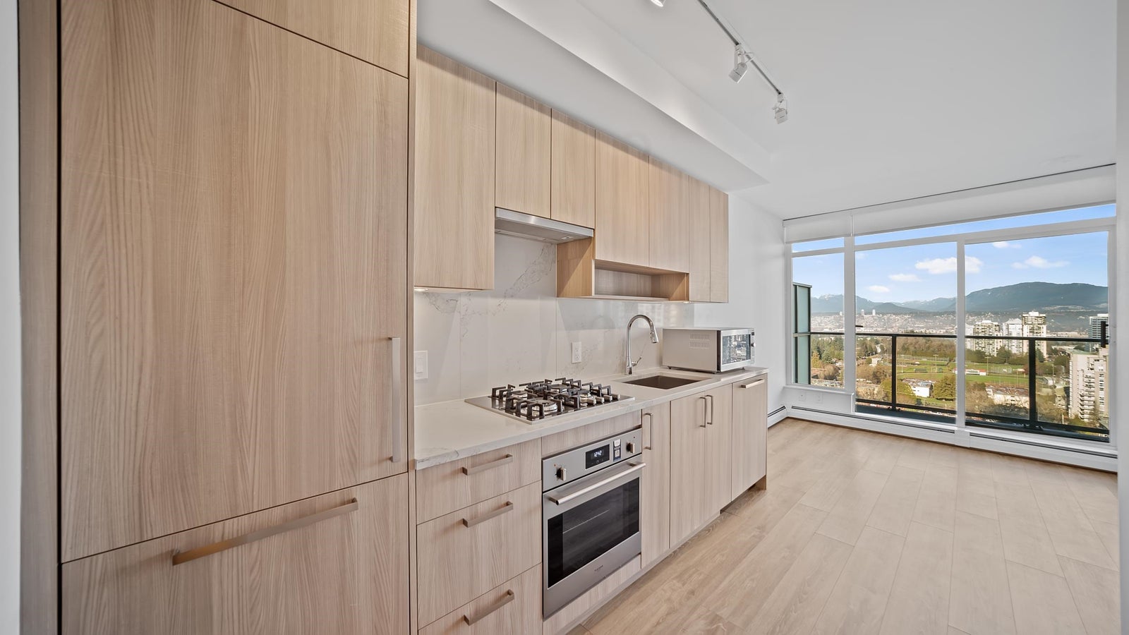 Amazing Views from the 20th floor of One Central! This stunning 1-bedroom residence offers contemporary urban living with breathtaking city and North Shore mountain views. Located in a prime and rapidly growing neighborhood, this newly built condo showcases modern design, upscale amenities, and stylish finishes throughout. The open-concept layout is thoughtfully designed to maximize space and natural light, creating a bright and inviting living environment. The sleek, modern kitchen features high-end appliances, including a gas cooktop, perfect for both everyday living and entertaining. Access to top tier amenities, including fitness center, lounge, and a spacious rooftop deck—ideal for relaxing, socializing, and soaking up the sun. Walking distance to skytrain for ultimate convenience!